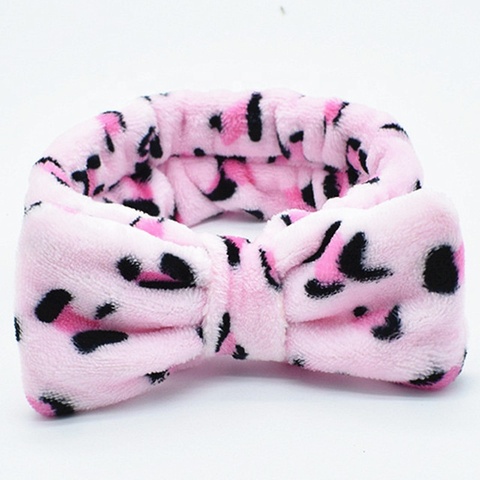 ヒョウ柄ヘッドバンドウォッシュフェイス弾性コーラルフリース韓国メイクヘッドバンド
