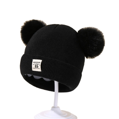 Bonnet d'hiver doux plus chaud avec patch en cuir pour adultes et bébés